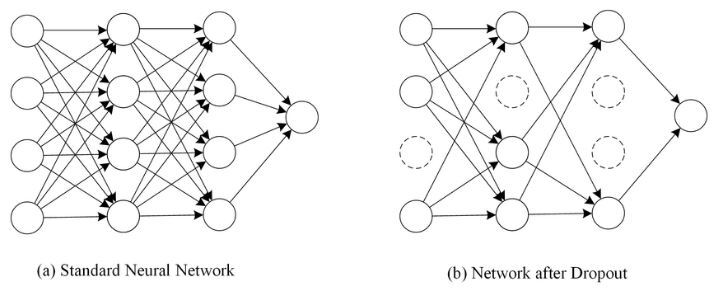 Dropout은 신경망 학습 시에만 사용하고, 예측 시에는 사용하지 않는 것이 일반적이다. 학습 시에 인공 신경망이 특정 뉴런 또는 특정 조합에 너무 의존적이게 되는 것을 방지해주고, 매번 랜덤 선택으로 뉴런들을 사용하지 않으므로 서로 다른 신경망들을 앙상블하여 사용하는 것 같은 효과를 내어 과적합을 방지한다.